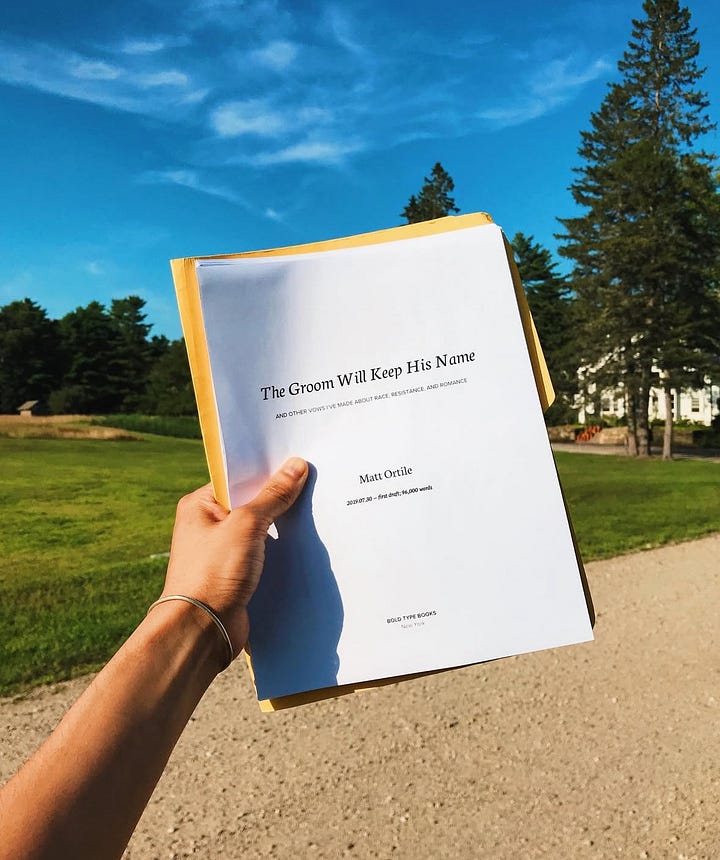 I spent all of July 2019 at MacDowell, a writing residency in New Hampshire to finish the first draft of my essay collection The Groom Will Keep His Name. The all-expenses-paid fellowship gave me a cabin in the woods, three meals a day, and ample space to get in the flow of producing pages. I didn’t travel exactly; I was holed up in the air-conditioned library for much of it. But the nearby town of Peterborough was quite charming, and I got to meet people from all over the world taking their art as seriously and irreverently as I did. (Among them was a college professor of mine. I was very proud to share a Serious Writer Community with him only five years after graduation.)